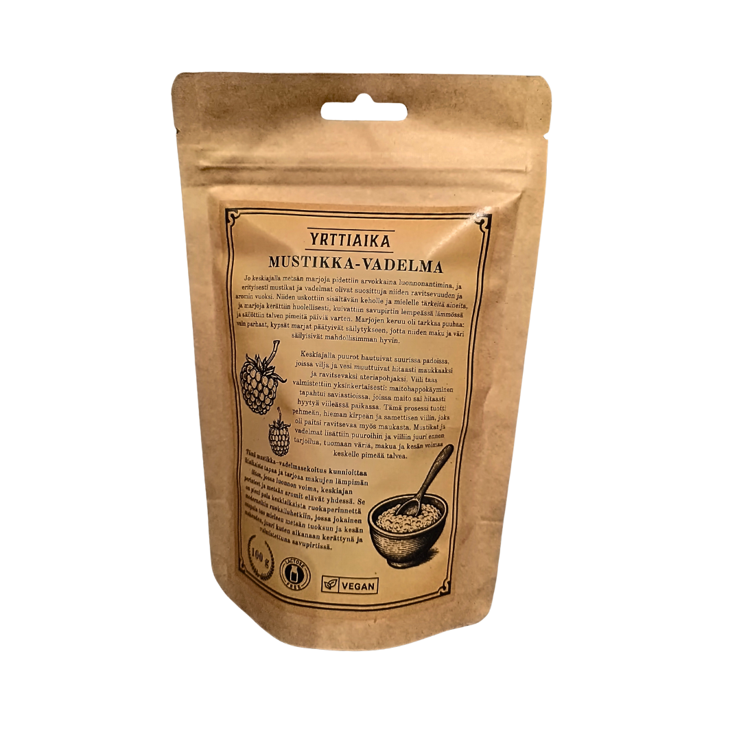 Tämä sekoitus ammentaa inspiraationsa keskiajan perinteistä, jolloin metsän marjoja pidettiin arvokkaina luonnonantimina. Mustikat ja vadelmat kerättiin huolellisesti, kuivattiin savupirtin lämmössä ja nautittiin puurojen ja viilin värikkäänä, aromikkaana lisänä.